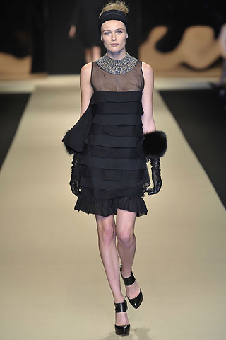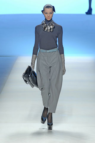 Короткие брови с приподнятыми концами удлиняют широкое короткое лицо.